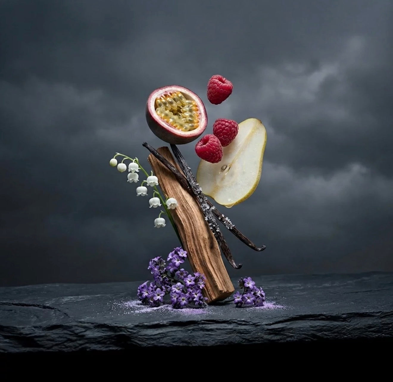 Notes dominantes : Fruit de la passion, poire, framboise, muguet, héliotrope, bois de santal